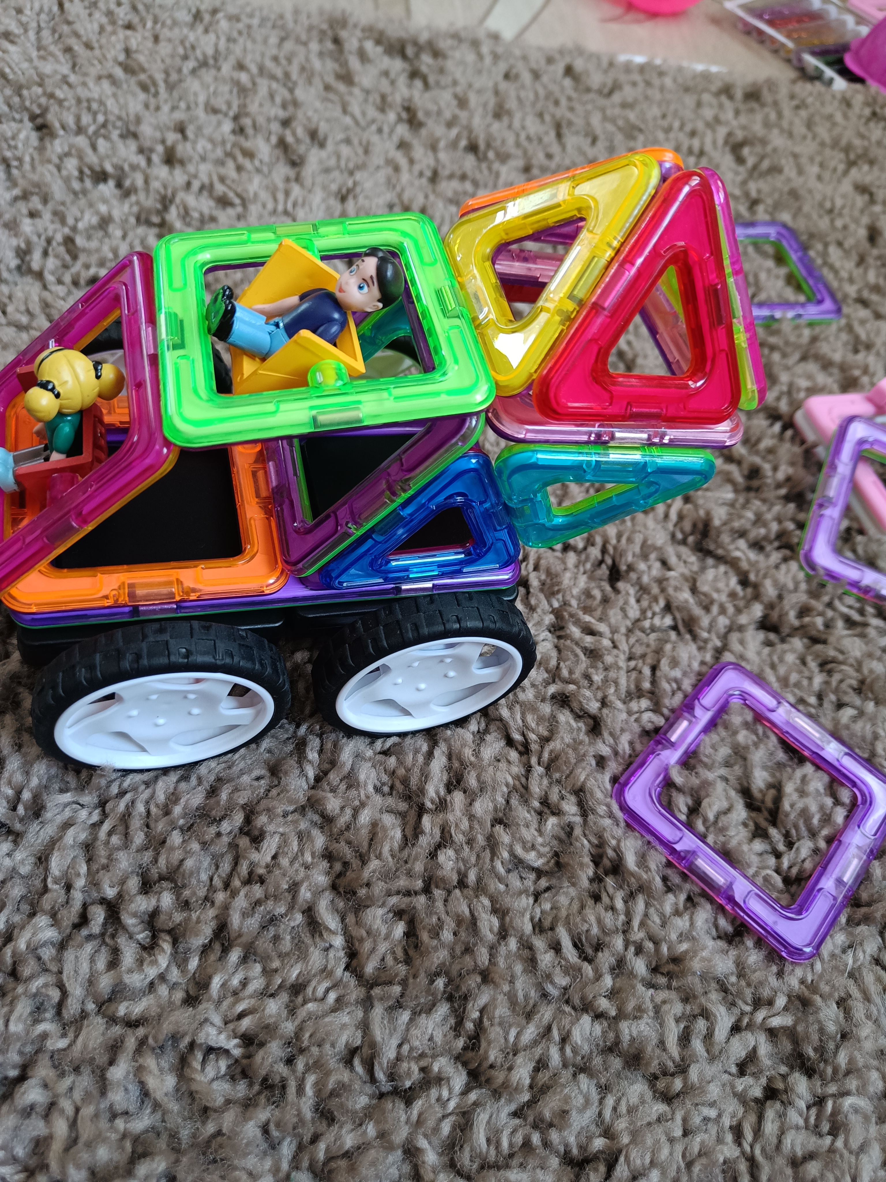 Набор «Гонка-2» станет удачным подарком для маленьких любителей машинок и конструкторов. В комплект входят 19 деталей: магнитные рамки различной формы (в том числе две с подвижными фигурками людей) и база с колесами. Крупные детали не имеют острых углов, поэтому их можно без опаски давать даже детям младшего возраста. Набор можно легко комбинировать с другими магнитными конструкторами, в том числе с комплектом «Гонка». Благодаря разнообразию комплектующих ребенок может собрать две непохожие машинки и устроить настоящие гонки (готовые конструкции получаются достаточно прочными для отдельной игры).